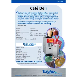 Taylor 428 with FlavorBurst “Taylor are the only company that can offer a machine that makes a true ‘American Style’ thick shake which offers multiple flavours. Being able to offer such a great product has given me the ability to compete with the major chains!” “I have been using this machine for over 10 years […]